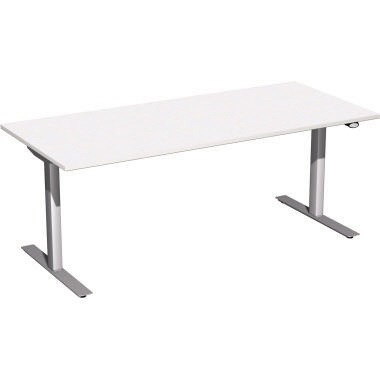 Geramöbel Schreibtisch Elektro Flex 180 x 68-116 x 80 cm (B x H x T) Dreischicht-Feinspan, melaminharzbeschichtet lichtgrau · Art der Höhenverstellung: elektronisch · Höheneinstellbarkeit möglich: Ja · Verkettbarkeit möglich: Nein · Material der Platte: Dreischicht-Feinspan, melaminharzbeschichtet · Maße: 180 x 68-116 x 80 cm (B x H x T) · höhenverstellbar: Ja · Form der Platte: Rechteck · Farbe des Gestells: silber · Farbe der Tischplatte: weiß · Dicke der Platte: 2,5 cm · Form des Gestells: T-Fuß