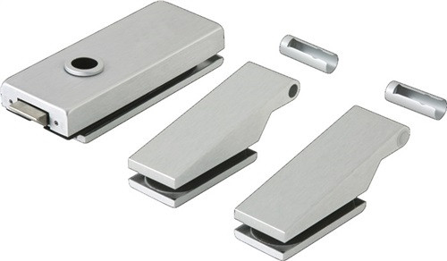 Komplettset mit Schloss, Bändern und Hülsen – ohne Drücker Glastürschloss STUDIO Classic mit rechteckigem Kappenende · für 8 mm Glasdicke und 24 mm Falztiefe bzw. für 10 mm Glasdicke und 26 mm Falztiefe · DIN links / rechts verwendbar · Material Aluminium · für ESG 8 bzw. 10 mm · max. Türflügelgewicht: 45 kg / 55 kg (OFFICE Bänder) · Schlosskasten Abmessungen (BxHxT): 165x65x37 mm · Schloss nach DIN 18 251, Klasse 3 (200.000 Betätigungen der Fallenfunktion und 50.000 Betätigungen des Riegels, bei fest montiertem Beschlag nach DIN 18 257 · Einsatzbereich für 1-/2-flügelige Anlagen oder Anlagen mit Seitenteil · mit Drückerführung · ohne Drücker Glastürbänder STUDIO Classic mit rechteckigem Bandende · max. 45 Kg Flügelgewicht und max. 1000 mm Flügelbreite · Material Aluminium · für ESG 8 mm Glasdicke und 24 mm Falztiefe bzw. für 10 mm Glasdicke und 26 mm Falztiefe · Band Abmessungen (BxH) 131x43 mm · mit Hülse · 2-teilig · Weitere technische Eigenschaften Glasstärke: 8/10mm • Material: Leichtmetall • Anschlagrichtung: DIN links/rechts • Glasart: ESG • max. Türgewicht: 45kg