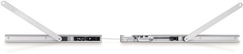 mit elektro-mechanischer Feststellung (E 24 V CD) für integrierte mechanische Türschließer · Feststellwinkel stufenlos einstellbar von 80° - 120° · Haltekraft der Feststellung einstellbar · Bandabstand 1300 mm · Weitere technische Eigenschaften Oberfläche: silber • Schutzart: IP 43 • max. Türgewicht: 180kg • Einschaltdauer ED: 100%