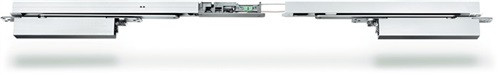 für 2-flügelige Türanlagen · für integrierte Türschließer · mit beidseitiger elektromechanischer Feststellung · Betriebsspannung 24 V DC · für asymetrische Teilung · Variante kleiner Standflügel · Bandabstand min. 1230 mm ·  Weitere technische Eigenschaften Oberfläche: silber • Schutzart: IP 43 • max. Türgewicht: 80kg • Einschaltdauer ED: 100%