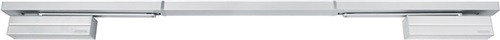 durchgehende Gleitschiene mit beidseitiger elektromechanischer Feststellung · EN-Größe 3-6 für Bandabstand von 1350-2500 mm · geprüft nach DIN EN 1155/1158 · mit Schließfolgeregelung nach dem Klemmkeil-System · 2 mm höhenverstellbar für Toleranzausgleich · Feststellpunkt stufenlos zwischen 80° und 130° einstellbar · Feststellpunkt überfahrbar, stufenlos einstellbar · Haltekraft stufenlos einstellbar Spannungsversorgung 24V DC · Stromaufnahme Feststellelement (24V DC) 2x ca. 75mA · Normalmontage auf der Bandseite · DIN links und DIN rechts verwendbar · Lieferung ohne Türschleißer - Bitte separat bestellen ·  Weitere technische Eigenschaften Einschaltdauer ED: 100%