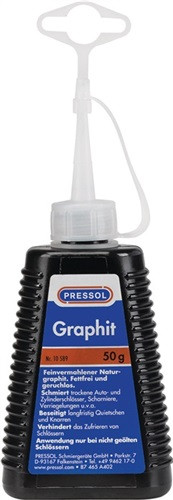 feinvermahlener Naturgraphit · fettfrei und geruchlos · schmiert trockene Auto- und Zylinderschlösser, Scharniere und Verriegelungen · beseitigt langfristig Quietschen und Knarren · verhindert das Zufrieren von Schlössern · Anwendung nur bei nicht geölten Schlössern · dicht durch auslaufsichere Verschlusskappe · genaue Dosierung möglich · Weitere technische Eigenschaften Gebinde: Spritzkännchen