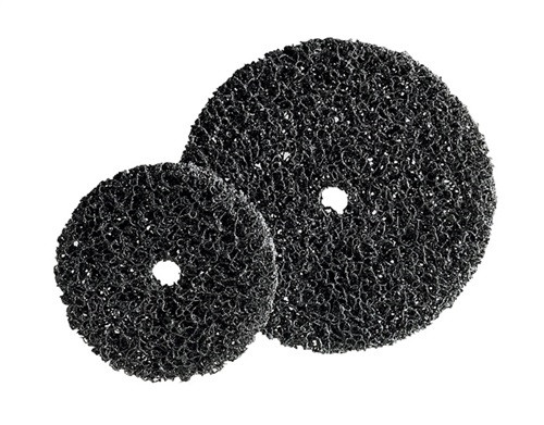 sehr grobes und aggressives Reinigungsvlies, durchsetzt mit Spezialkorn · hohe Abtragleistung · lange Standzeit · sehr gut geeignet zur Rost- und Lackentfernung · Reinigen von Schweißnähten · Entfernen von Klebern und Unterbodenschutz · Reinigen von Betonplatten · Beseitigung von Zunder u. v. m. · Bohrung 13 mm Ø · zur Verwendung mit Spannschaft Art.-Nr. 40 00 841 846, 40 00 841 847 · Weitere technische Eigenschaften Sorte: grob • Farbe: schwarz • Bohrung: 13mm • max. Drehzahl: 8000min-¹