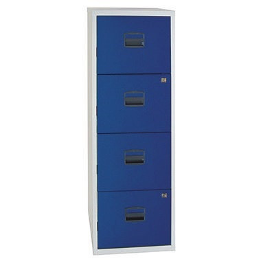 Büroschubladenschrank PFA4F. Ideal für Home Office und Bereiche mit geringer Nutzung. 75 % Auszug der Schübe. Großes Etikettenfenster. · Werkstoff: Stahl · Garantiedauer: 2 Jahre · Maße: 41,3 x 132,1 x 40 cm (B x H x T) · Material des Griffes: Kunststoff · Schließung vorhanden: Ja · Verwendung für Papierformat: DIN A4 · Farbe des Korpus: lichtgrau · Tragfähigkeit der Schublade: 15 kg · Farbe des Griffes: schwarz · Farbe der Front: oxfordblau · Auszugsperre vorhanden: Ja · Art des Auszuges: Teilauszug · Art der Schubladenführung: kugelgelagert · Anzahl der Hängeregistraturen: 4 Hängeregistraturen · Garantie gewährt: Ja · Form des Griffes: Griffmulde