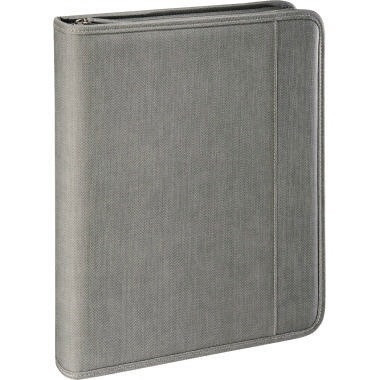 In hochwertiger Textil-Optik, klar strukturiertes und übersichtliches Design. · Ausführung der Lieferzusammenstellung: inkl. Dokumentenfach (A4), herausnehmbare Ring-Mechanik, Ein · Werkstoff: Polyurethan · Verwendung für Produkt: Tablets bis 9,7" · Verwendung für Papierformat: DIN A4 · Maße: 28,5 x 35,3 x 5,4 cm (B x H x T) · Griff vorhanden: Nein · Durchmesser des Ringes: 30 mm · Ausführung der Ablagemechanik: 4 Ringe · Art des Verschlusses: Reißverschluss · Farbe: hellgrau