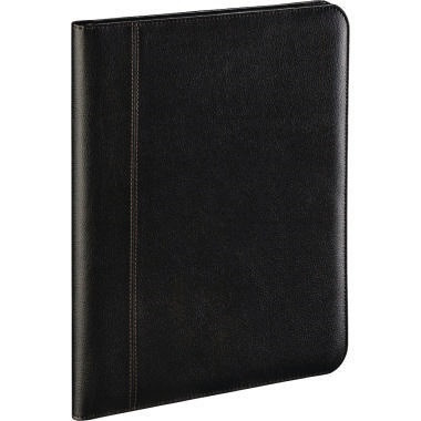 Business-Schreibmappe mit Blockeinschub von 4 Seiten. Klar strukturiertes und übersichtliches Design. In hochwertiger textiler Optik. · Werkstoff: Polyurethan · Verwendung für Papierformat: DIN A4 · Maße: 25,5 x 33 x 2 cm (B x H x T) · Ausführung der Lieferzusammenstellung: inkl. Dokumentenfach, Einsteckfächer, Sichtfenster für Visit · Griff vorhanden: Nein · Farbe: schwarz