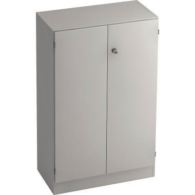 Mit Drehtür. Dreipunktverriegelung. Drehknauf. Höhenjustierbar durch den Boden 0-10 mm. Sockelblende 10 cm hoch. · Garantie gewährt: Ja · Schließung vorhanden: Ja · Montageart bei Lieferung: zerlegt · max. Öffnungswinkel: 270 ° · Werkstoff: Holz, melaminbeschichtet · Maße: 80 x 127 x 42 cm (B x H x T) · Farbe: grau · Anzahl der Ordnerhöhen: 3 Ordnerhöhen · Anzahl der Fachböden: 2 Fachböden · Höhe des Fachbodenrasters: 32 mm · Garantiedauer: 2 Jahre