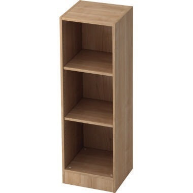 Regal schmal. Höhenjustierbar durch den Boden 0-10mm. Sockelblende 10 cm hoch. Lieferung zerlegt, teilmontiert. · Garantiedauer: 2 Jahre · Maße: 40,6 x 127 x 40 cm (B x H x T) · Höhe des Fachbodenrasters: 32 mm · Farbe: nussbaum · Anzahl der Ordnerhöhen: 3 Ordnerhöhen · Anzahl der Fachböden: 2 Fachböden · Werkstoff: Holz, melaminharzbeschichtet · Garantie gewährt: Ja