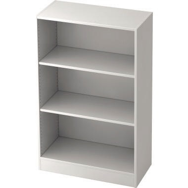 Regal Solid. Höhenjustierbar durch den Boden 0-10 mm. Sockelblende 10 cm hoch. Lieferung zerlegt, teilmontiert. · Garantie gewährt: Ja · Werkstoff: Holz, melaminharzbeschichtet · Tragkraft pro Boden: 25 kg · Maße: 80 x 127 x 40 cm (B x H x T) · Garantiedauer: 2 Jahre · Farbe: weiß · Dicke der Platte: 19 mm · Anzahl der Ordnerhöhen: 3 Ordnerhöhen · Anzahl der Fachböden: 2 Fachböden · Höhe des Fachbodenrasters: 32 mm