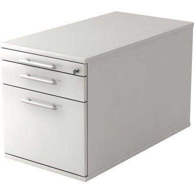 Zentralverriegelung. Relinggriff. Teleskop-Metall-Kugelführungen. 75% Teilauszug Schub, 104% Vollauszug Hängeregistratur. Belastung Schub 25 kg, Hängeregistratur 45 kg. Frontstück der Hängeregistratur mit Blendenstütze. Container gleichschließend. Korpus verleimt, 2 mm Kunststoff -Kante gerundet. Stellfüße und Griff e müssen montiert werden. · Garantie gewährt: Ja · Selbsteinzug möglich: Ja · Schließung vorhanden: Ja · Rollen vorhanden: Ja · Material des Griffes: Kunststoff · Garantiedauer: 2 Jahre · Werkstoff: Holz, melaminharzbeschichtet · Farbe: weiß · Auszugsperre vorhanden: Ja · Art des Auszuges: gemischt · Anzahl der Schubfächer: 2 Schubfächer · Anzahl der Hängeregistraturen: 1 Hängeregistratur · Anzahl der Auszüge pro Container: 3 Auszüge pro Container · Maße: 42,8 x 51,2 x 80 cm (B x H x T)