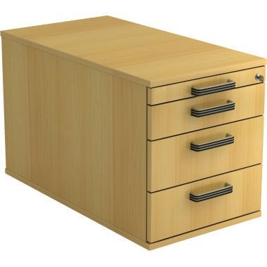 Orga-Schub. Auszugssperre wechselseitig. Teleskop-Metall-Kugelführungen. Schübe 25 kg belastabar. Container gleichschließend. Korpus verleimt. Kunststoff-Kante (2 mm) gerundet. Rollen und Griffe müssen montiert werden.