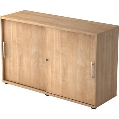 2 Schiebetüren, 1 Mittelseite abschließbar. Druckzylinderschloss. Relinggriff. 5 Sockelgleiter, höhenjustierbar 0-10 mm. 3 mm Rückwand nur innenseitig Silber. Anlieferzustand zerlegt, teilmontiert. · Farbe: nussbaum · Garantie gewährt: Ja · Garantiedauer: 2 Jahre · Maße: 120 x 74,8 x 40 cm (B x H x T) · Material des Griffes: Kunststoff · Schließung vorhanden: Ja · Anzahl der Ordnerhöhen: 2 Ordnerhöhen