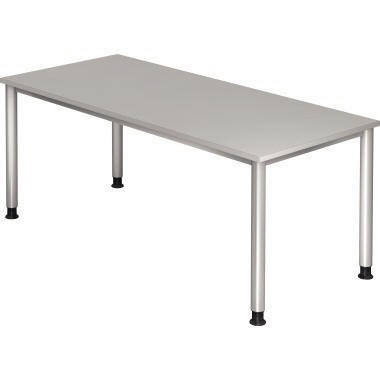 Stufenlos einstellbar. · Garantiedauer: 2 Jahre · Verkettbarkeit möglich: Ja · Oberflächenbeschaffenheit der Plattenoberfläche: melaminharzbeschichtet · Material der Plattenkante: ABS · Material der Platte: Holz · Maße: 180 x 68-76 x 80 cm (B x H x T) · Höheneinstellbarkeit möglich: Ja · Form des Gestells: 4-Fuß · Form der Platte: Rechteck · Farbe des Gestells: silber · Farbe der Tischplatte: grau · Dicke der Platte: 2,5 cm · Art der Höhenverstellung: mit Kurbelantrieb · Garantie gewährt: Ja · höhenverstellbar: Ja