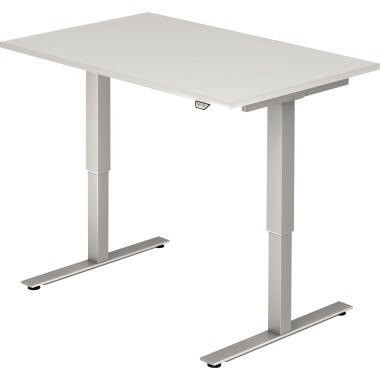Mit Tastschalter. Elektisch stufenlos höhenverstellbar. Elektroantrieb 1-stufig, 2 Motoren. Tragkraft 80 kg dynamisch, 120 kg statisch. Anlieferzustand zerlegt. Einfache Montage · höhenverstellbar: Ja · Verkettbarkeit möglich: Ja · Maße: 120 x 72-119 x 80 cm (B x H x T) · Form des Gestells: T-Fuß · Material der Platte: Holz · Material der Plattenkante: ABS · max. Höhe: 119 cm · Oberflächenbeschaffenheit der Plattenoberfläche: melaminharzbeschichtet · min. Höhe: 73 cm · Garantiedauer: 2 Jahre · Höheneinstellbarkeit möglich: Ja · Art der Höhenverstellung: elektronisch · Dicke der Platte: 2,5 cm · Farbe der Tischplatte: weiß · Farbe des Gestells: silber · Form der Platte: Rechteck · Garantie gewährt: Ja
