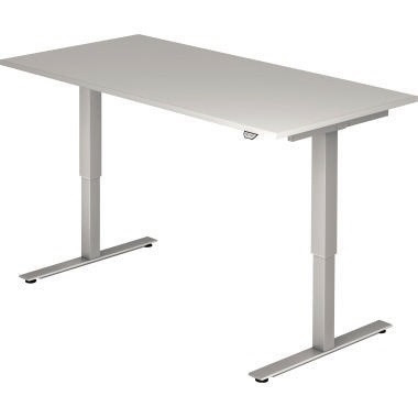 Mit Tastschalter. Elektisch stufenlos höhenverstellbar. Elektroantrieb 1-stufig, 2 Motoren. Tragkraft 80 kg dynamisch, 120 kg statisch. Anlieferzustand zerlegt. Einfache Montage · max. Höhe: 119 cm · Höheneinstellbarkeit möglich: Ja · Verkettbarkeit möglich: Ja · min. Höhe: 73 cm · Material der Plattenkante: ABS · Material der Platte: Holz · Maße: 160 x 72-119 x 80 cm (B x H x T) · höhenverstellbar: Ja · Dicke der Platte: 2,5 cm · Garantie gewährt: Ja · Form des Gestells: T-Fuß · Form der Platte: Rechteck · Farbe des Gestells: silber · Art der Höhenverstellung: elektronisch · Farbe der Tischplatte: grau · Garantiedauer: 2 Jahre · Oberflächenbeschaffenheit der Plattenoberfläche: melaminharzbeschichtet