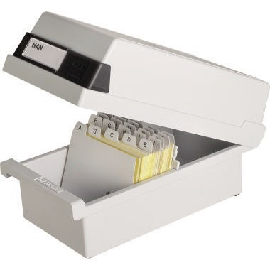 Das Unterteil kann platzsparend in den abnehmbaren Deckel gestellt werden, optimales Beschriftungsfeld, möbelschonende Kautschukfüßchen, verschiebbare Sichtreiter. · max. Anzahl der Karten: 800 Karten · Farbe: lichtgrau · Werkstoff: Polystyrol · Verwendung für Kartenformat: DIN A7 quer · Tiefe: 250 mm · Anzahl der Stützplatten: 1 Stützplatte · Farbe des Deckels: lichtgrau · Breite: 133 mm · Ausführung der Lieferzusammenstellung: Inkl. verschiebbarem Sichtreiter, Gummifüßen, Beschriftungsf · Maße: 13,3 x 12,3 x 24,6 cm (B x H x T) · Höhe: 121 mm