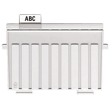 Sichtreiter für Stützplatten. · Beschriftungsschild auswechselbar: Ja · Breite des Kartenreiterkopfes: 35 mm · Farbe: transparent · Höhe des Reiterkopfes: 15 mm · Maße: 3,5 x 1,5 cm (B x H) · max. Anzahl der Druckzeilen: 3 Druckzeilen · Werkstoff: Polystyrol
