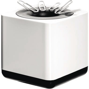 Klammernspender i-Line - ein elegantes, formschönes Accessoire für Büro und Empfang. Stilvoll und hochglänzend für moderne Schreibtischwelten. Stabile und standfeste Ausführung. Die iLine-Serie verbindet gleichermaßen den hohen Anspruch an Design und Funktion in perfekter Form. Möbelschonend durch großflächige, weiche Gummibeschichtung. · Material der Klammern: Metall · Werkstoff: Polystyrol · Tiefe: 70 mm · rutschfest: Ja · Maße: 7 x 7 x 7 cm (B x H x T) · Magnet für Klammernhalt vorhanden: Ja · Klammer vorhanden: Ja · Höhe: 70 mm · Farbe: weiß/schwarz · Farbe der Klammer: silber · Breite: 70 mm · Sonderform: eckig