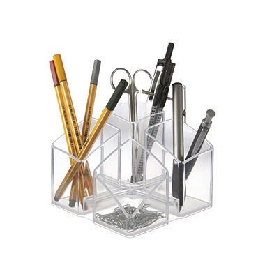 Der hochwertige Schreibtischköcher setzt durch seine klare Form deutliche Akzente auf dem Schreibtisch oder der Empfangstheke. Individuell kombinierbar und erweiterbar. · Farbe: transparent · Werkstoff: Polystyrol · Tiefe: 125 mm · rutschfest: Ja · Höhe: 100 mm · Breite: 125 mm · Ausführung der Lieferzusammenstellung: inkl. Gummifüßchen, kombinierbar bis zu 16 Fächern · Anzahl der Fächer: 4 Fächer · Maße: 12,5 x 10 x 12,5 cm (B x H x T)