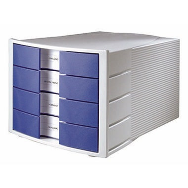 Groß dimensionierte, elegant integrierte Beschriftungsetiketten. Extra stabiles Gehäuse aus einem Stück gefertigt. Stapelbar, dadurch Platz sparend. Rutschfeste, möbelschonende Gummifüße sorgen für einen sicheren Stand. · Gehäusefarbe: lichtgrau · Tiefe: 368 mm · stapelbar: Ja · rutschfest: Ja · Maße: 29,4 x 23,5 x 36,8 cm (B x H x T) · Höhe: 235 mm · Höhe der Schublade: 37 mm · Werkstoff: Polystyrol · Verwendung für Papierformat: DIN A4, DIN C4 · Anzahl der Schubfächer: 4 Schubfächer · Format der Schubladen: 4 x breit · Farbe der Schublade: blau · Breite: 294 mm · Beschriftungsfeld vorhanden: Ja · Auszugsperre vorhanden: Ja · Ausführung des Öffnungszustandes: geschlossen · Ausführung der Lieferzusammenstellung: inkl. Gummifüßchen · Griffmulde vorhanden: Ja · Griffloch vorhanden: Nein