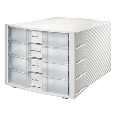 Groß dimensionierte, elegant integrierte Beschriftungsetiketten. Extra stabiles Gehäuse aus einem Stück gefertigt. Stapelbar, dadurch Platz sparend. Rutschfeste, möbelschonende Gummifüße sorgen für einen sicheren Stand. · Tiefe: 368 mm · Höhe der Schublade: 37 mm · Werkstoff: Polystyrol · Höhe: 235 mm · Maße: 29,4 x 23,5 x 36,8 cm (B x H x T) · stapelbar: Ja · Verwendung für Papierformat: DIN A4, DIN C4 · Griffmulde vorhanden: Ja · Breite: 294 mm · rutschfest: Ja · Gehäusefarbe: lichtgrau · Farbe der Schublade: klar transluzent · Beschriftungsfeld vorhanden: Ja · Auszugsperre vorhanden: Ja · Ausführung des Öffnungszustandes: geschlossen · Ausführung der Lieferzusammenstellung: inkl. Gummifüßchen · Anzahl der Schubfächer: 4 Schubfächer · Griffloch vorhanden: Nein · Format der Schubladen: 4 x breit