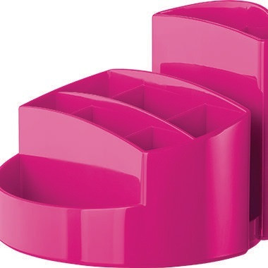Geschmeidige Formen in hochwertiger Verarbeitung: durchdacht, schwungvoll und dynamisch. Für Stifte und gleichzeitig ein intelligenter Brief- und Kartenschlitz. Standfest und hochglänzend. Möbelschonende Elastikpuffer sind inklusive. Lieferung ohne Deko. · Werkstoff: Polystyrol · Tiefe: 140 mm · Maße: 14 x 10,9 x 14 cm (B x H x T) · Höhe: 109 mm · Farbe: new colours pink · Anzahl der Fächer: 9 Fächer · Breite: 140 mm