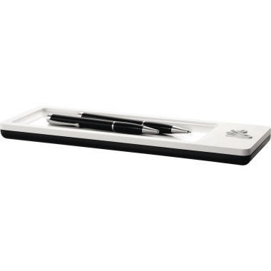 Ein elegantes, formschönes Accessoire für Büro und Empfang. Stilvoll und hochglänzend für moderne Schreibtischwelten. Stabile und schwere Ausführung. Die iLine-Serie verbindet gleichermaßen den hohen Anspruch an Design und Funktion in perfekter Form. Lieferung ohne Deko. · Breite: 280 mm · Werkstoff: Polystyrol · Tiefe: 95 mm · Sonderform: rechteckig · Maße: 28 x 1,8 x 9,5 cm (B x H x T) · Farbe: weiß/schwarz · Ausführung: rechteckig · Anzahl der Fächer: 1 Fach · Höhe: 18 mm