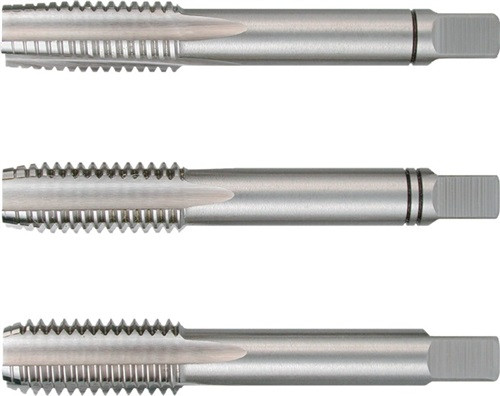 HSS · DIN 352 · metrisches ISO-Gewinde · Gewinde-Toleranz für metrisch Gewinde nach DIN ISO 13 · Vierkantschaft nach DIN 10 · Innengewinde · rechtsschneidend · Gewindebohrer aus Hochleistungs-Schnellarbeitsstahl · für Durchgangsgewinde in unlegierte und niedriglegierte Stähle bis 800 N/mm² Festigkeit, Temperguss und NE-Metalle · das Gewinde wird in drei Arbeitsgängen geschnitten Satz 3-teilig, bestehend aus Vor-, Mittel- und Fertigschneider · Weitere technische Eigenschaften Inhalt: 3 teilig • Gewindelänge: 18mm • Schaft-Ø: 6mm • Schneidstoff: HSS