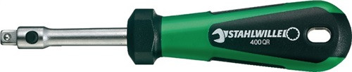 6,3 mm (1/4")-Vierkantantrieb · Chrom-Alloy-Stahl, verchromt mit QuickRelease-Sicherheitsverriegelung · DIN 3122/ISO 3315 · Weitere technische Eigenschaften Griff: 2 K-Griff • Material: Chrom-Alloy-Stahl