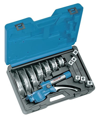· Abmessungen von 10 bis 22 mm Ø bis 90° · Für weiche Kupferrohre EN 1057 bis 22 mm (auch wärmeisoliert) sowie Präzisionsstahlrohre EN 10305-3 (DIN 2394) bis 18 x 1,5 mm · Hydraulischer Antrieb für geringen Kraftaufwand · Lieferung im Kunststoffkasten No. 245590