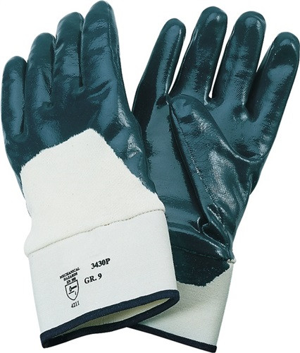 nach EN 388 · EN 420 · Kat. II · Material: widerstandsfähige, hochwertige Nitrilbeschichtung · robust beim Umgang mit scharfkantigen Materialien · flüssigkeitsabweisend · stößt Fett und Öl wirksam ab · mit Sicherheitsstulpe · hohe Abriebfestigkeit · gummierte Stulpe · auf SB Karte · Anwendung: Beton- und Baustoffverarbeitung, z. B. Pflasterarbeiten, Blech-, Gussteile- und Metallverarbeitung, Abfallentsorgungsbetriebe · Weitere technische Eigenschaften Kategorie: II • Abriebfestigkeit: 4 • Weiterreißfestigkeit: 1 • Stichfestigkeit: 1 • Schnittfestigkeit (Schneidetest): 2 • Ausführung: Sicherheitsstulpe, teilbeschichtet • Norm: EN 388