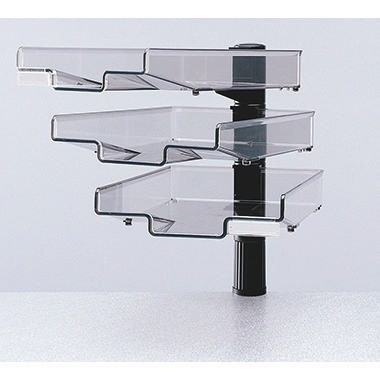 Schalen können längs oder quer angebracht werden. Sie eignen sich für Unterlagen bis max. 24 x 34 cm. Höhe unterste Schale über Tisch: 15 cm. Ausladung: 27-37 cm. · Farbe des Briefkorbes: transparent · Werkstoff: Kunststoff/Eisen · Verwendung für Tischdicke: 7,2 cm · Verwendung für Papierformat: DIN A4 · Tragfähigkeit des Briefkorbes: 3 kg · max. Schwenkbereich des Briefkorbes: 360 ° · Farbe: schwarz · Beschriftungsfeld vorhanden: Ja · Ausführung der Lieferzusammenstellung: inkl. 3 Schalen, Universalzwinge · Ausführung der Befestigung: geschraubt · Maße: 25 x 40,5 x 40,5 cm (B x H x T)