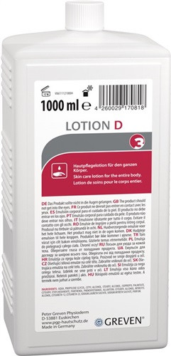 besonders geeignet zur Pflege normaler und beanspruchter Haut nach dem Waschen, Duschen oder Baden · für Hände, Gesicht und den ganzen Körper · führt der Haut Feuchtigkeit und Fettstoffe zu · pflegt mit feuchtigkeitsspendendem Allantoin · wirkt entzündungshemmend und beschleunigt die Wundheilung · silikonfrei · parfümiert · Anwendung: wird nach jedem Waschvorgang auf die gründlich abgetrocknete Haut aufgetragen · Weitere technische Eigenschaften Ausführung: silikonfrei, parfümiert • Gebinde: Flasche • Reinigungsbereich: Ganzkörperpflege • passend für: 90 00 473 400