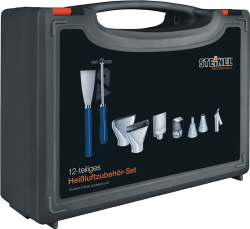 12-teilig im Koffer · für alle typischen Heißluftanwendungen, wie Entfernen von Farbe, Schweißen von Planen, Verschweißen von Kunststoffen, Schrumpfen von Kabelbäumen · punktuelles Erwärmen und Verformen sowie viele weitere Anwendungen einsetzbar mit: HL 1920 E, HL 2020 E, HG 2120 E, HG 2220 E, HG 2320 E