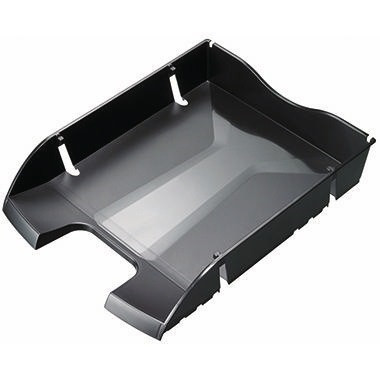 Briefablagen können zum Transport ganz ineinander gesteckt werden, dadurch Reduzierung der Verpackungskartons. · Maße: 27,5 x 6,6 x 35,5 cm (B x H x T) · Zertifikat/Zulassung: Blauer Engel · Werkstoff: PET · Verwendung für Papierformat: DIN A4, DIN C4 · Tiefe: 355 mm · stapelbar: Ja · Greifausschnitt vorhanden: Ja · Farbe: schwarz · Breite: 275 mm · Blauer Engel: Ja · Beschriftungsfeld vorhanden: Ja · Höhe: 66 mm