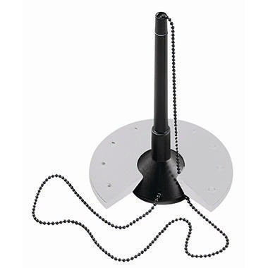 Mit schwarz verchromter Kette, schwarzem Kugelschreiber und schwarzer Mine. Mit rutschfesten Gummifüßen. · Höhe: 155 mm · Tiefe: 100 mm · Schreibfarbe: schwarz · rutschfest: Ja · Material der Anbindung: Chrom · Werkstoff: Polystyrol · Farbe: schwarz/lichtgrau · dokumentenecht: Nein · Breite: 100 mm · Anzahl der Stifthalterungen: 1 Stifthalterung · Anbindung für Stift vorhanden: Ja · Maße: 10,1 x 15 cm (Ø x H) · Länge der Anbindung: 56 cm