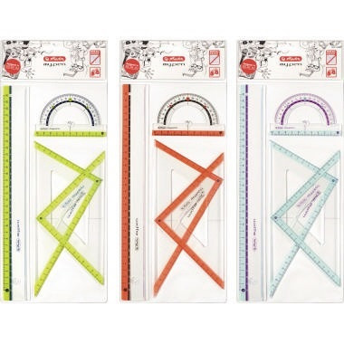 Herlitz Geometrieset my.pen inkl. 1 Lineal 30 cm, 1 Winkelmesser 10 cm, 2 Geometriedreiecke Kunststoff · Länge der Hypotenuse: 21 cm · Griff vorhanden: Nein · Material: Kunststoff · Ausführung der Lieferzusammenstellung: inkl. 1 Lineal 30 cm, 1 Winkelmesser 10 cm, 2 Geometriedreie · Farbe: farbig sortiert · farbig hinterlegte Winkelgrade vorhanden: Ja