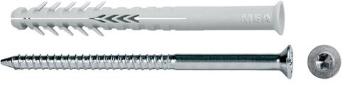 Senkbunddübel mit Senkkopf-TX-Schraube · mit Europäischer Technischer Zulassung für Lochbaustoffe, wie Hlz, KS-Lochstein und Hohlblocksteine · Setztiefe von 90 mm für optimalen Halt · einsetzbar für Anwendungen wie Fassadenunterkonstruktionen aus Holz und Metall, Befestigung von Toren, Türen, Fenstern, Kanthölzern, Hängeschränken etc. · Weitere technische Eigenschaften Werkstoff: Polyamid