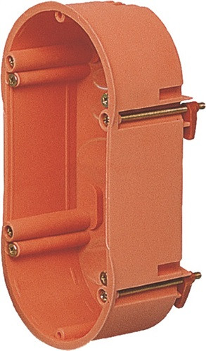 Ausbrechöffnungen für Leitungen und Rohre · doppelt für Kombinationen · mit beiliegenden Verbindungsstutzen · vormontierte Geräteschrauben und breite, stabile Krallen · Abstand der Schraubenlöcher 60 mm · Weitere technische Eigenschaften Farbe: orange • Tiefe: 47mm