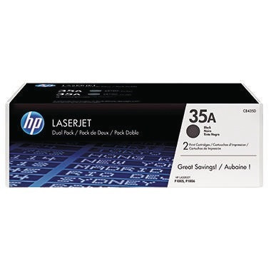 Die HP LaserJet Druckkassetten sorgen durch rund geformte HP Monochromtonerpartikel für brillante, gestochen scharfe Texte und Bilder. In die Kassetten integrierte Intelligenz verbessert die Zuverlässigkeit und ermöglicht Zeit sparende Funktionen für ein noch besseres Preis-Leistungs-Verhältnis. · max. Anzahl der Druckseiten: ca. 2 x 1.500 Seiten · Verwendung für Gerätetyp: Laserdrucker · Verwendung für Druckertyp: LaserJet P 1005, -1006, -1007, -1008 · Originalzubehör: Ja · Farbe: schwarz · Ausführung des Inhalts (Packung): 2 St./Pack. · Ausführung der Farbe: schwarz · Typbezeichnung der Verbrauchsmittelgruppe: 35A