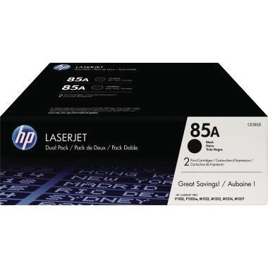 Mit HP 85A LaserJet Tonerkassetten können Sie mehr drucken und sparen. Professionelle Druckqualität für ein besseres Preis-Leistungs-Verhältnis als bei einzelnen Kassetten. Bleiben Sie produktiv und verringern Sie Ausfallzeiten, indem Sie immer eine zusätzliche Tonerkassette zur Hand haben. · Originalzubehör: Ja · Verwendung für Druckertyp: LaserJet M 1130MFP Serie, -1132MFP, -1136MFP, -1210MFP Serie · Verwendung für Gerätetyp: Laserdrucker · Typbezeichnung der Verbrauchsmittelgruppe: 85A · freier Inhalt: 2 St./Pack. · Farbe: schwarz · Ausführung der Farbe: schwarz · Ausführung des Inhalts (Packung): 2 St./Pack. · max. Anzahl der Druckseiten: ca. 2 x 1.600 Seiten