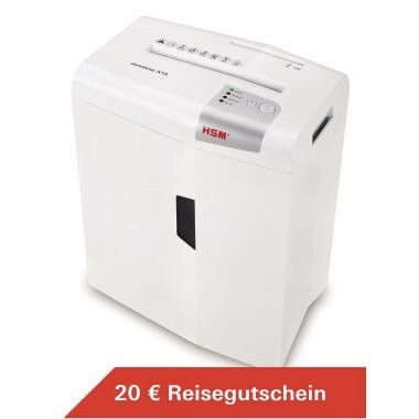 Professioneller Datenschutz am Arbeitsplatz. Separates CD-Schneidwerk mit eigenem Auffangbehälter für sortenreine Entsorgung. Leiser Betrieb minimiert Geräuschentwicklung am Arbeitsplatz. Die LED-Anzeige zeigt Betriebszustand des Geräts an. Müheloses Entleeren des Auffangbehälters durch abnehmbares Gehäuseoberteil. HSM Reiseaktion: Jetzt beim Kauf dieses HSM Aktenvernichter-Aktionsmodells einen Reisegutschein sichern. Alle Informationen zur HSM Reiseaktion finden Sie unter diesem Link: www.hsm.eu/reiseaktion.