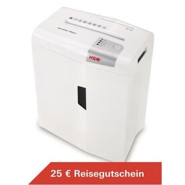 Zuverlässiger und bedienerfreundlicher Aktenvernichter für den Einsatz am Arbeitsplatz. Separates CD-Schneidwerk mit eigenem Auffangbehälter für sortenreine Entsorgung. Leiser Betrieb minimiert Geräuschentwicklung am Arbeitsplatz. Die LED-Anzeige zeigt Betriebszustand des Geräts an. Müheloses Entleeren des Auffangbehälters durch abnehmbares Gehäuseoberteil. HSM Reiseaktion: Jetzt beim Kauf dieses HSM Aktenvernichter-Aktionsmodells einen Reisegutschein sichern. Alle Informationen zur HSM Reiseaktion finden Sie unter diesem Link: www.hsm.eu/reiseaktion.