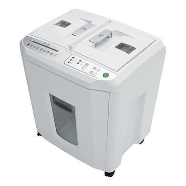 Innovatives Auto-Feed-System zur automatischen Zuführung von Papierstapeln bis zu 150 Blatt. Übersichtliches Bedienfeld mit LED-Leuchtanzeigen für den Betriebsstatus und Drucktasten für Vorwärtslauf/Stopp/Rückwärtslauf. Automatisches Abschalten der Stromzufuhr im EcoMode. Leiser, kraftvoller und energieeffizienter Motor. Separates Schneidwerk für CDs/DVDs/Kreditkarten. Sicherer Einsatz des Gerätes durch umfangreiches Sicherheitspaket. Herausnehmbarer Schnittgutbehälter für Papier mit großem Abschaltautomatik bei vollem Behälter. Separater Schnittgutbehälter für CDs/DVDs oder Kreditkarten. Mobil durch Lenkrollen. · Schnittgeschwindigkeit: 30 mm/s · Maße: 44,4 x 52 x 36 cm (B x H x T) · max. Anzahl der Blätter (70g/qm) je Schneidearbeitsgang: 6 Bl. manuell, 150 Bl. automatisch (70 g/m²) · max. Anzahl der Blätter (80g/qm) je Schneidearbeitsgang: 5 Bl. manuell, 150 Bl. automatisch (80 g/m²) · Netzfrequenz: 50 Hz · Netzspannung: 230 V · Oberteil abnehmbar: Nein · Partikellänge: 10 mm · Rücklauffunktion vorhanden: Ja · verwendbares Schnittgut: Papier, Heftklammern, Kreditkarten, CDs/DVDs · Masse (Gewicht): 14,5 kg · Schnittbreite: 4 mm · Rauminhalt für Schnittgut: 30 l · Bezeichnung der Sicherheitsstufe: P-4, O-1, T-2, E-2 · Sichtfenster vorhanden: Ja · Leistungsaufnahme des Motors: 200 W · automatische Abschaltung vorhanden: Ja · Betriebsanzeige: LED · Art des Schnittes: Partikelschnitt · Blauer Engel: Nein · Eco-Modus vorhanden: Ja · Ein-/Ausschalter vorhanden: Ja · Eingabebreite für die Materialzuführung: 220 mm · Farbe: hellgrau · Garantie gewährt: Ja · Garantiedauer: 2 Jahre · Art der Betätigung (Schneidwerk): automatisch