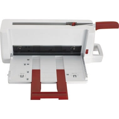 Ultra-kompakter, tragbarer Büro-Stapelschneider für kleine Formate. Doppelt geführter, an drei Punkten einrastbarer Rückanschlag für einfaches Schneiden von DIN-Formaten. Über die seitlich angebrachte Maßskala lässt sich jedes Maß millimetergenau schneiden. LED-Schnittandeuter für präzise Schnitte. Rutschfeste Gummifüße für sicheren Stand. Praktischer Tragegriff zum bequemen Transport. · Garantie gewährt: Ja · Masse (Gewicht): 5,2 kg · Tiefe des Zuführungsbereichs: 300 mm · max. Dicke des Stapels je Schnittarbeitsgang: 5,5 mm · max. Anzahl der Blätter (70g/qm) je Schneidearbeitsgang: 55 Bl. (70 g/qm²) · Material des Tisches: Kunststoff · Maße: 50 x 19 x 24 cm (B x H x T) · Art der Betätigung (Pressung): manuell · Garantiedauer: 2 Jahre · Farbe: hellgrau · Breite des Restschnittes: 45 mm · Ausführung des Rückanschlags: verstellbar · Ausführung der Sicherheitsausstattung: Sicherheitsklappe · Länge des Schnittes: 300 mm