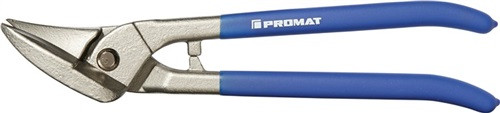 Qualitätsstahl · für gerade durchlaufende und Figurenschnitte · grau gesandstrahlt · mit offenen, abgebogenen Schenkeln · Schneiden kpl. gehärtet · (58 HRC) · Weitere technische Eigenschaften Griff: Kunststoffüberzug • HRC: 58 • Schneide: Qualitätsstahl