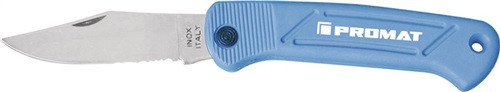Kabelmesser 1-teilig mit zwei Kerben · zum Abisolieren von NYM Kabel · Klinge aus rostfreiem Stahl (420) · Kunststoffgriffschale mit isolierten Nieten · Weitere technische Eigenschaften Griff: Kunststoff