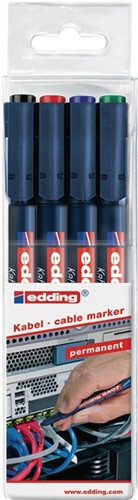 Marker zum besonders feinen, permanenten Beschriften von Kabeln aller Art (PC-Kabel, HiFi-Kabel, Meterware, Baubereich, uvm.) · sehr feine Spitze · Wasser - und Abriebbeständigkeit · lichtbeständig und schnell trocknend · VE = 4er Etui farbig sortiert, schwarz, rot, blau, grün · Rundspitze