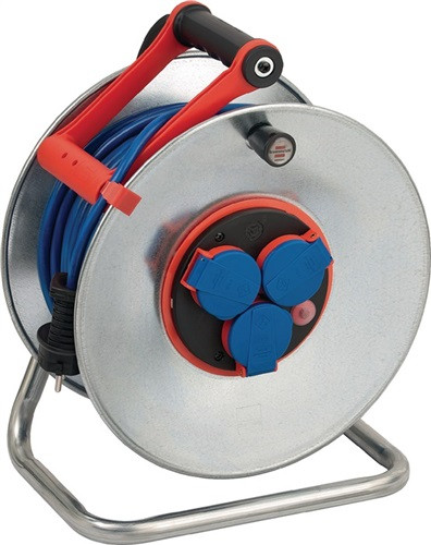 aus verzinktem rostgeschützten Stahlblech · Bremaxx Kabel ist extrem stabil, hochflexibel bis - 35°C, ölbeständig und extrem abriebfest · 3 Schutzkontaktsteckdosen 230 V, spritzwassergeschützt mit selbstschließenden Deckeln · Überhitungsschutz, Kontroll-Leuchte bei Überhitzung und Überlastung · Kabelfarbe: blau · Trommel-Ø: 290 mm Duo-Sicherheits-System: Überhitzungsschutz und Unfallschutzautomatik mit Kontroll-Leuchte · Besondere Produktvorteile: · innovativer Tragegriff "cablepilot" für perfekte Kabelführung · pendelt auf beiden Seiten und ermöglicht bequemes Tragen und Aufhängen · mit Drehgriff für komfortables Aufrollen  Gummikabel AT N05V3V3-F 3G1,5  · für die kurzzeitige Verwendung im Freien ·  Weitere technische Eigenschaften Kabelfarbe: blau