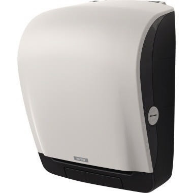 Ein Spender, passend für verschiedene Papierhandtuchqualitäten. Freie Wahl bei der Nutzung der Schließfunktion (mit oder ohne Schlüssel). Das Einlegen einer Papierrolle in den Spender erfolgt durch einfaches Hineinlegen in die vorgesehene Halterung. Anschließend das Papier bis zur markierten Linie ziehen (Paper until here) und den Deckel schließen. Einfach auf 'Push' drücken und das Papier kommt automatisch heraus. Der vollständig zu öffnende Schneidemechanismus ist leicht zugänglich. Dank der transparenten Seitenwände lässt sich der Papierverbrauch ganz leicht kontrollieren. · Verwendung für Rollenbreite: 190 mm · Werkstoff: Kunststoff · Verwendung für Produkt: Rollenhandtücher · Maße: 33,5 x 40,3 x 21,6 cm (B x H x T) · Farbe: weiß · abschließbar möglich: Ja